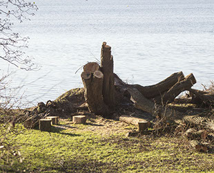 Auch umgekippte Wurzelstöcke nach Sturmschäden sind für uns ein Problem.